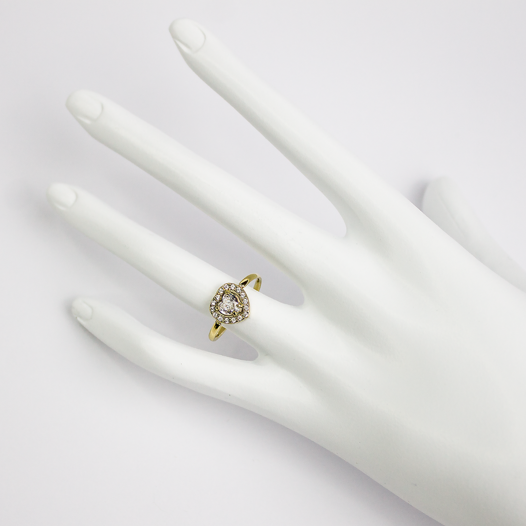 Cette bague dorée présente un charmant cœur en cristal entouré de petites pierres étincelantes de zirconium. Le design ouvert et délicat en fait un bijou parfait pour exprimer vos sentiments avec élégance et style. Idéale pour un cadeau ou une occasion romantique. Elle est de taille ajustable.