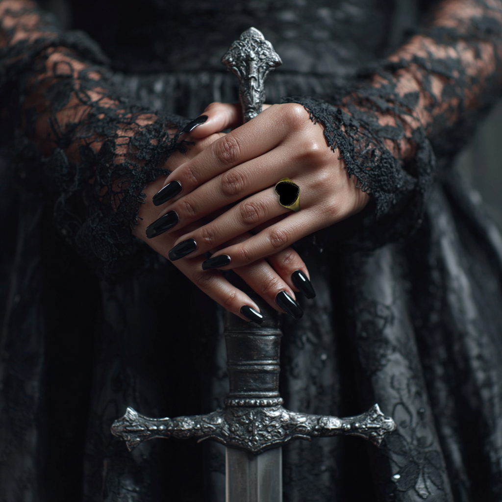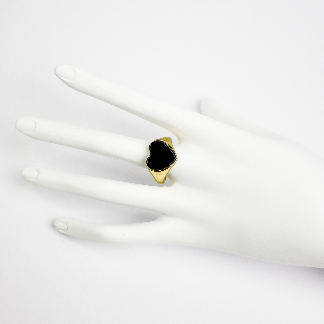 Bague en acier inoxydable doré ajustable cœur nacre noir