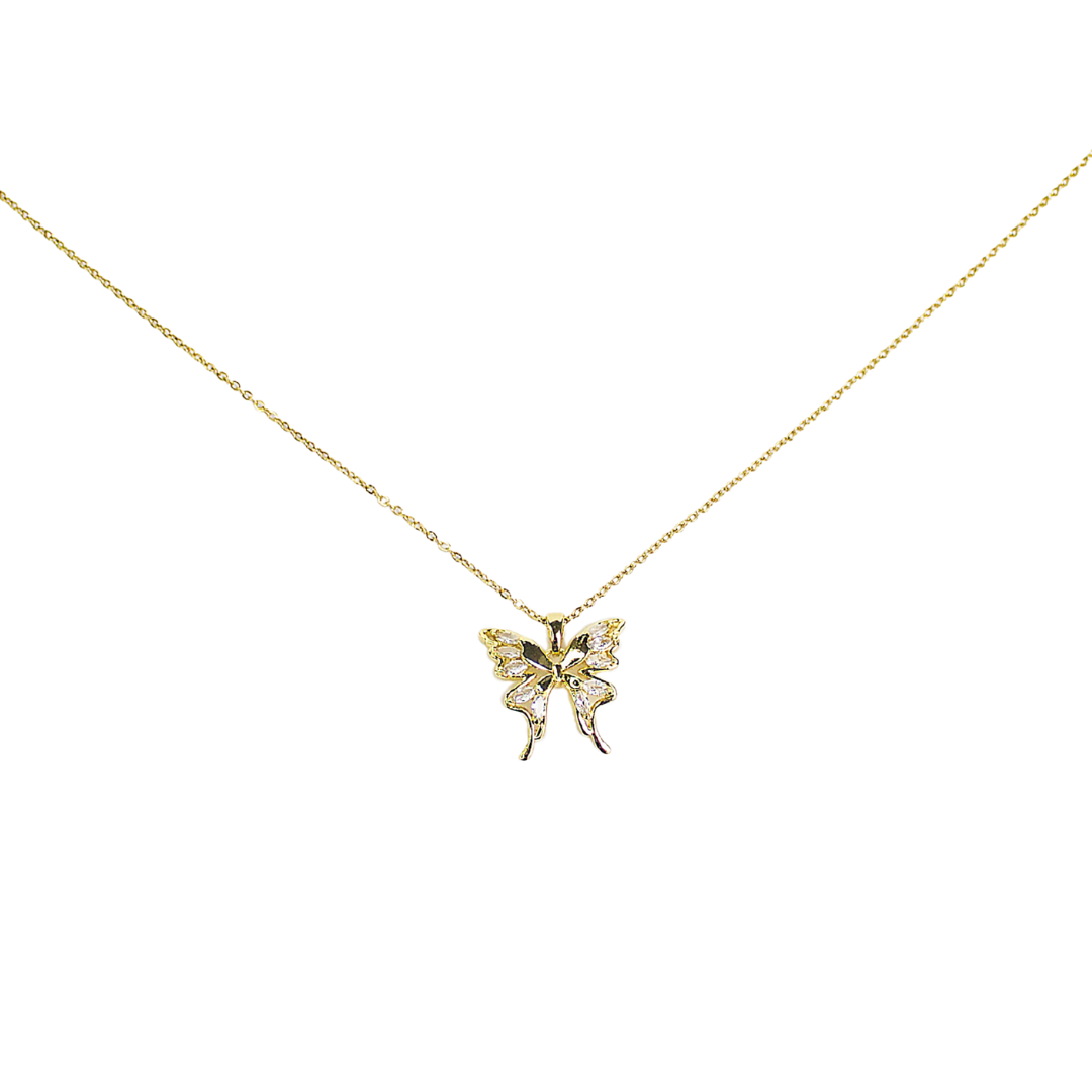 Collier chaine et pendentif représentant un papillon en strass.