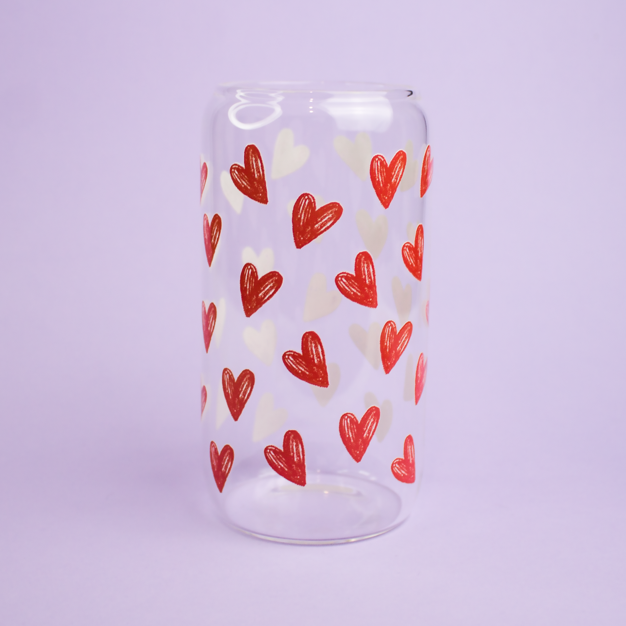 Gobelet en verre Catherine en forme de canette avec couvercle en bambou, paille en verre et goupillon de nettoyage.